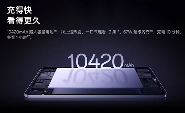 10420mAh,OPPO Pad5配置的是10420mAh大容量电池,最长可以实现56天的超长待机保电,关机保电更是高达784天。