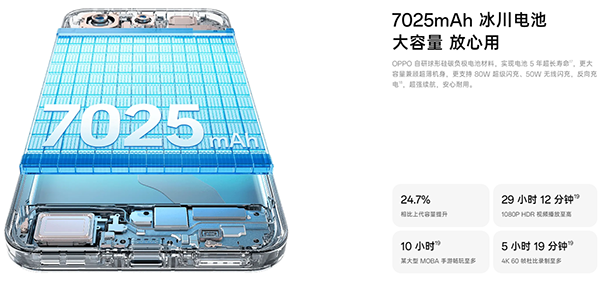 落地到手机硬件中,OPPO Find X9内置一块7025mAh的冰川电池,相较上代提升17%。