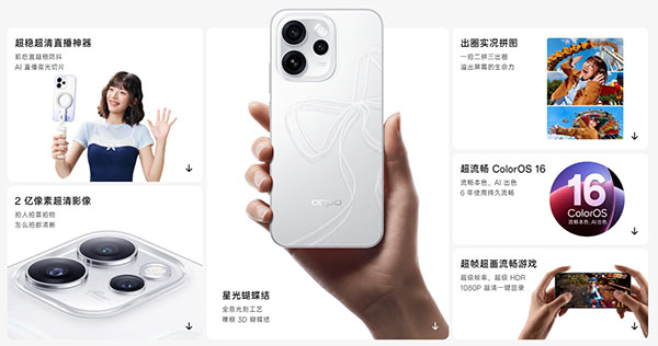 在机身设计方面,Reno15系列的设计灵感源于灵动闪耀的运动芭蕾美学,将“蝴蝶结”这一充满生命力的符号融入机身,传递“系上蝴蝶结,点亮此刻星光”的情绪共鸣。