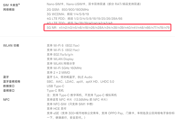5G方面,该机支持的是n1/n2/n3/n5/n8/n18/n26/n28A/n34/n38/n39/n40/n41/n48/n66/n77/n78/n79这些5G频段。