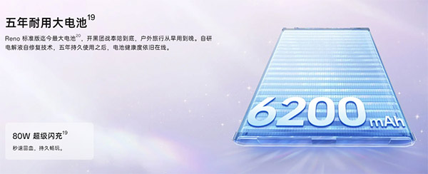 在电池的配置上,这次的OPPO Reno15配置的是6200mAh超大电池,受限于机身尺寸,小屏手机在续航方面往往能力较弱,然而这块6200mAh的石墨烯电池,能够提供相当不错的续航能力。