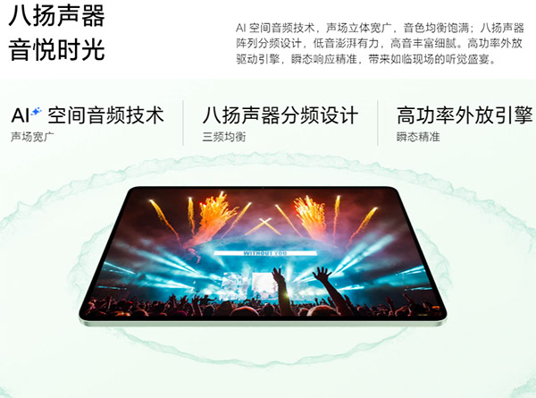 在音效方面,荣耀MagicPad3 12.5配置的是八扬声器,八扬声器阵列分频设计,低音澎湃有力,高音丰富细腻,高功率外放驱动引擎,瞬态响应精准,带来如临现场的听觉盛宴。