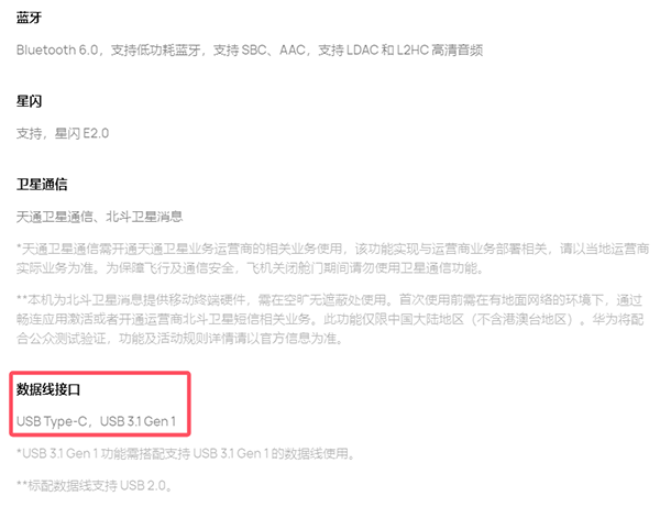 接口上,这个华为Mate80 Pro Max配置的是USB3.1 Gen1接口规格,USB3.1 Gen 1 功能需搭配支持USB3.1 Gen1 的数据线使用,而该机标配数据线支持USB 2.0。