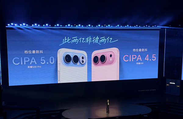 在这个影像方面,这一代的荣耀500全系延续2亿AI超清人像基础,配备档位最大1/1.4英寸大底传感器及1200万超广角镜头,荣耀500 Pro还带来5000万双防抖长焦镜头,支持CIPA5.0旗舰级防抖等级,无论面对手抖还是复杂光源,都能保证成片清晰度和曝光效果,从而带来档位超稳、超清晰的影像拍摄能力。