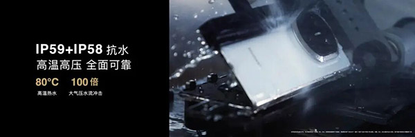 IP58+IP59级别,华为Mate X7达到IP58和IP59防尘抗水的顶级防护水准,80℃热水喷淋也不犯怵。