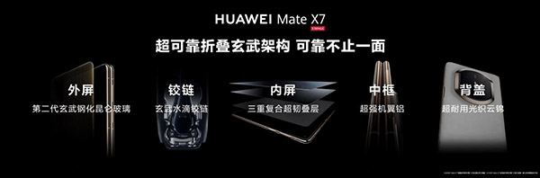 外观设计上,华为Mate X7采用全新“时空之门”设计,重塑未来美学范式,背板首次与传承1600年的非遗云锦工艺结合,整机重量235g,展开厚度 4.5mm,折叠厚度 9.5mm。