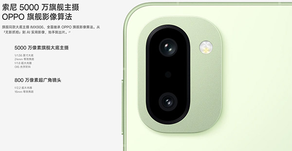 在影像的配置上,这次的一加Ace6T配备了2颗后置镜头+独立补光灯,其中主摄来自索尼IMX906大底传感器,1/1.56英寸感光面积,5000万像素,F1.8光圈,支持四合一像素技术和OIS光学防抖。