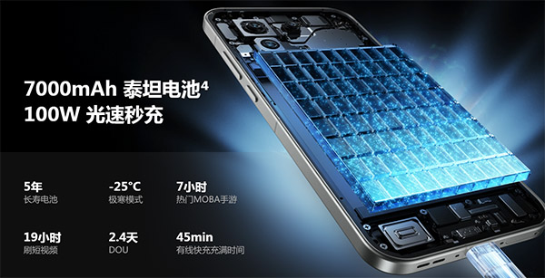 在续航方面,真我GT8表现得非常出色,内置的7000mAh泰坦电池,并且采用的是单电芯双接口设计方案,为用户提供了持久的电力支持。