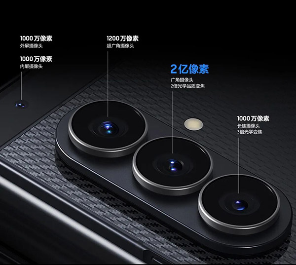 主摄是三星HP2,超广角是索尼IMX564,长焦是三星S5K3K1,内外屏前置都是索尼IMX825。