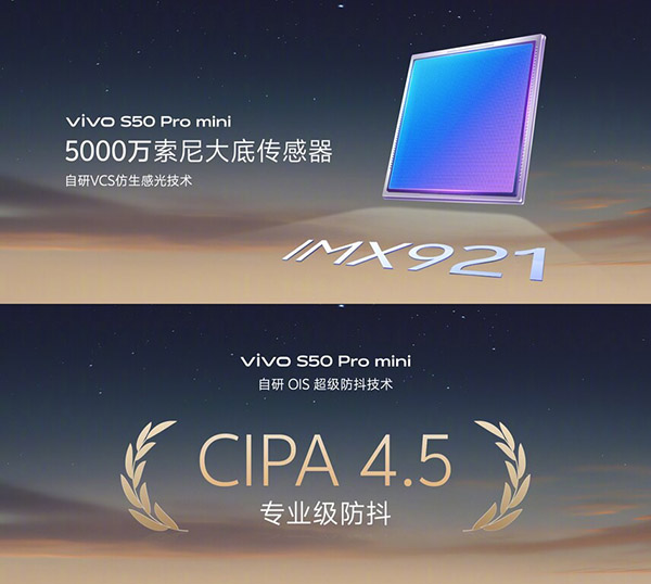 在这个影像方面,vivo S50 Pro mini主摄采用索尼IMX921传感器,配合vivo自研的VCS仿生感光技术,画面通透感进一步增强。
