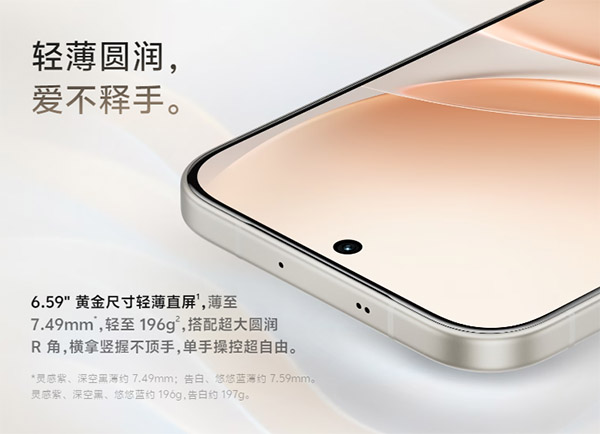 背板采用了缎面柔光玻璃工艺,上手触感细腻温润。后置镜头模组运用了独特的“浮空岛”设计,视觉上灵动精致。配合航空铝金属中框与超大圆润R角设计,整机线条流畅,在保障机身坚固耐用的同时,提供了轻巧舒适的握持感。