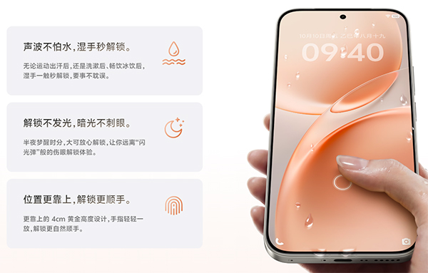 vivo S50搭载旗舰同款超声波指纹2.0,暗光解锁不刺眼,湿手秒解锁,硬件1nit超低亮度屏幕,4320Hz高频PWM调光,SGS硬件级低蓝光,局部峰值亮度5000尼特,全屏最大亮度1800尼特。