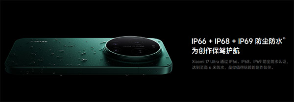 在防水方面,小米17 Ultra通过了IP66、IP68、IP69防水防尘认证,保证你在各类环境下都能安心使用。