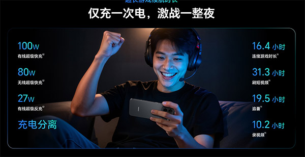 同时,荣耀WIN还支持100W有线充电、80W无线充电和27W有线反向充电,充电速度非常快。
