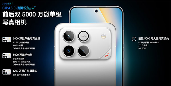 另外,该机还配置了5000万像素长焦人像镜头,属于是直立长焦,并不是潜望长焦,它还支持3倍光学变焦,能够满足用户在各种场景下的拍照需求。