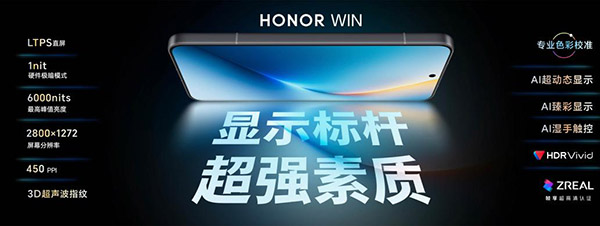 除了电竞之外,荣耀WIN的屏幕在其他方面也是旗舰水平,1272×2800分辨率,全局1nit的最低亮度以及全局2000nits的峰值亮度,最高峰值亮度更是可达6000nits。