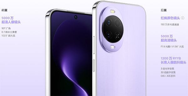 在这个后置三镜头系统,华为nova15标准版包括5000万像素超高清主摄、1200万像素 RYYB长焦人像镜头(支持3倍光学变焦和30倍数字变焦)、150万像素的多光谱传感器。
