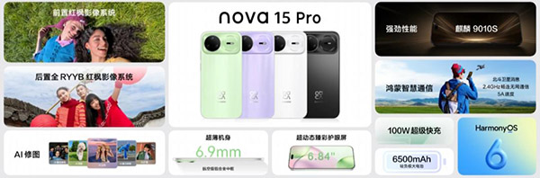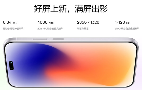 在屏幕上,华为nova15 Ultra采用6.84英寸超动态臻彩护眼直屏,分辨率为2856*1320,拥有4000尼特20%APL动态峰值亮度。
