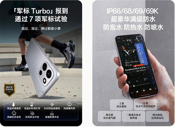 全新的一加Turbo6支持IP66、IP68、IP69、IP69K超豪华满级防水,拥有3重防水架构,13组防水气密结构组件,采用微米级的防水透气膜,可以轻松应对小意外。