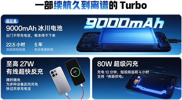 另外,该机搭配80W超级闪充和27W反向充电,Turbo6V不仅能快速补能,还能当临时充电宝给其他设备供电,解决了多设备用户的应急需求。
