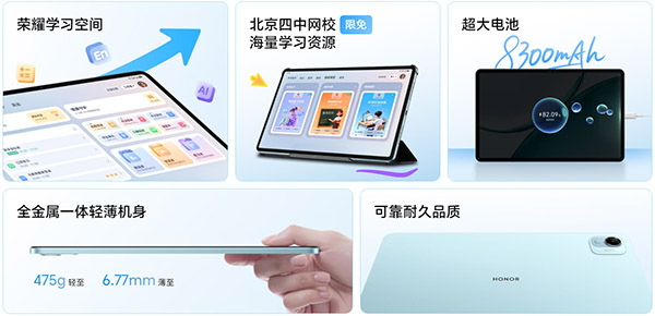 其他:4扬声器+1麦克风,Wi-Fi5,蓝牙5.1,预装基于Android 15的MagicOS 9.0操作系统。