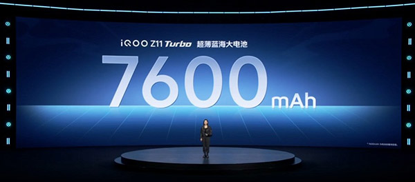 也就是说,iQOO Z11 Turbo内置7600mAh大容量电池,并且是单电芯,另外,配置的是100W有线快充。