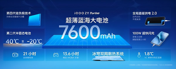 在这个续航上,这一代的iQOO Z11 Turbo内置7600mAh超薄蓝海大电池,采用行业领先的第四代硅负极技术,能量密度达iQOO全系最高的860Wh/L,续航能力远超同尺寸性能机。