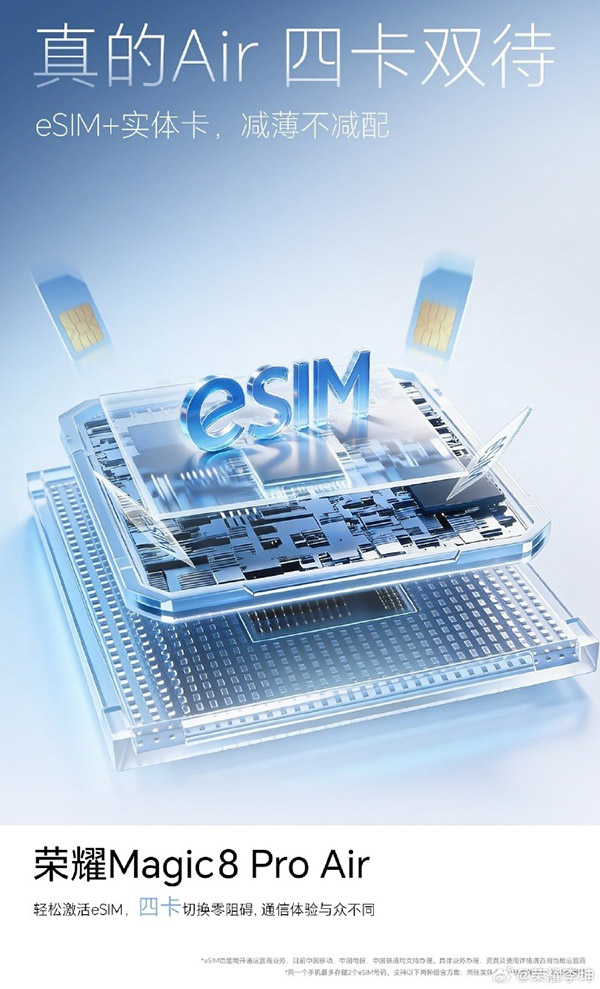 荣耀Magic8 Pro Air支持eSIM技术吗