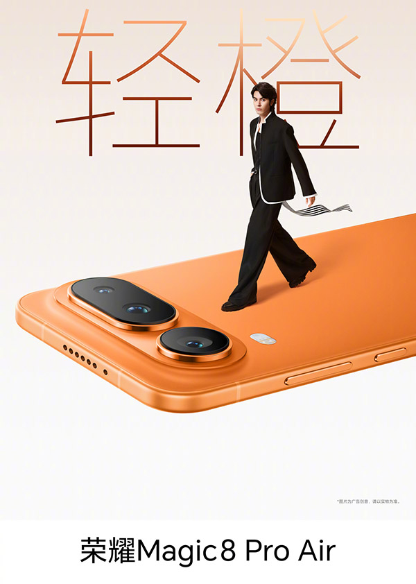 从外观上来看,这一代的荣耀Magic8 Pro Air共有羽白、轻橙、仙紫和影黑这四种配色,同时背板采用了7涂7烤的光感叠涂工艺,所呈现出的效果就是整机拥有“金属缎光”的质感,手感十分细腻。