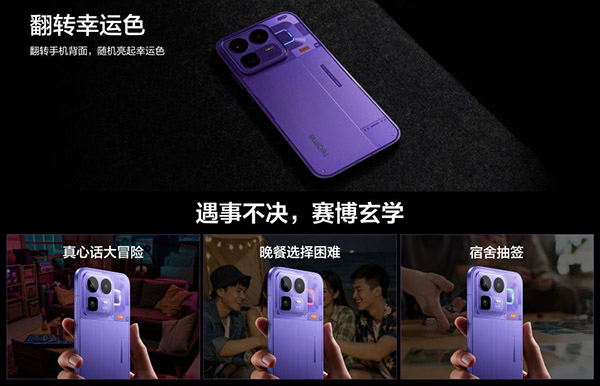 背部的觉醒光环系统成为交互亮点,可在来电、通知、充电、拍照等多种场景提供光效提示,支持颜色与效果自定义,还新增智慧弹码、翻转幸运色等趣味动作触发玩法。