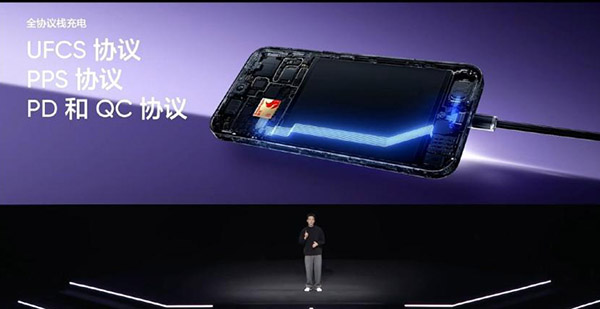 兼容80W及以下超级闪充,44W三方UFCS融合快充协议,55W PPS充电协议,13.5W PD充电协议,13.5W QC充电协议。