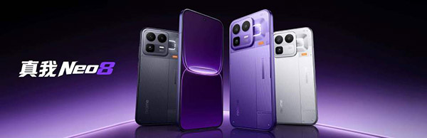 真我Neo8提供赛博紫、起源白、机甲灰三款全新配色,全系标配磨砂金属中框与大R角设计,实现手感与颜值兼得,质感全面升级。