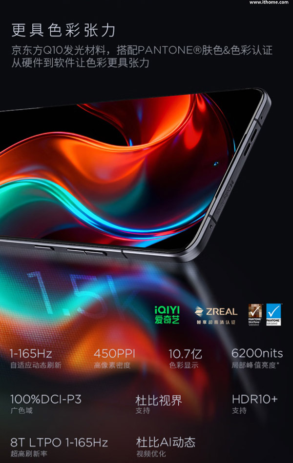 并支持165Hz的自适应刷新率,兼顾流畅和功耗表现。而且还拥有高达6200nits的局部峰值亮度,即使在户外阳光下,也能看清屏幕的内容细节。
