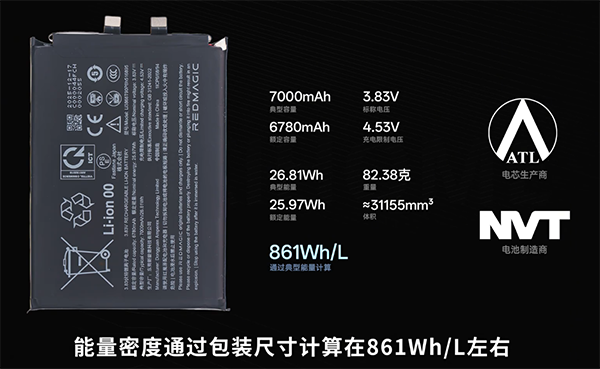 861Wh/L,红魔11 Air内置的7000mAh电池,电池能量密度在861Wh/L左右。