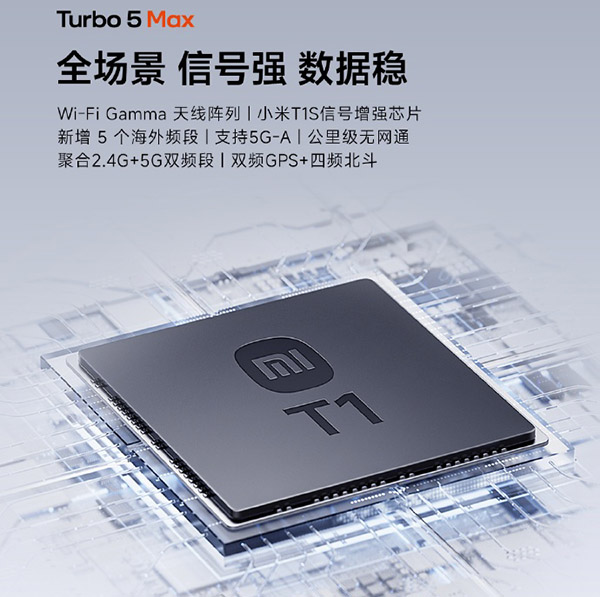 支持,这次的红米Turbo5 Max的双频GPS和四频北斗的加入,配合“公里级无网通”功能,保障了极端环境下的通信能力。