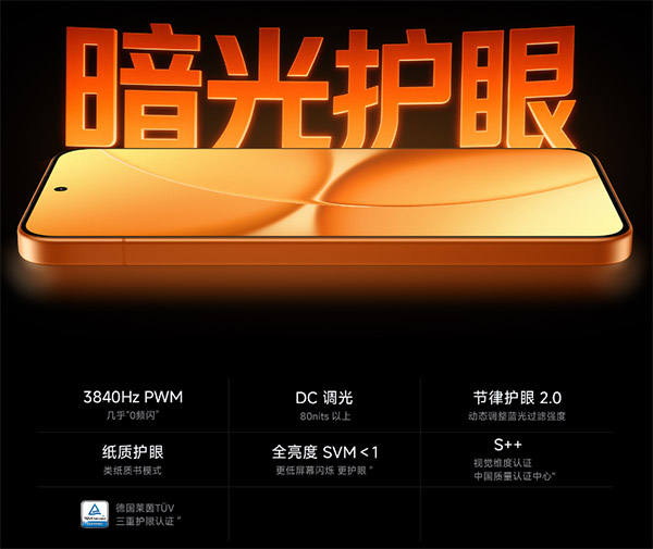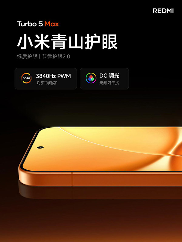 也就是说,红米Turbo5 Max配备了小米青山护眼方案,通过DC调光+3840Hz高频PWM混合调光的加持,能够做到低亮度下无频闪,有效减轻视觉疲劳,让长时间使用手机更舒适,但是它不支持圆偏振光护眼技术。