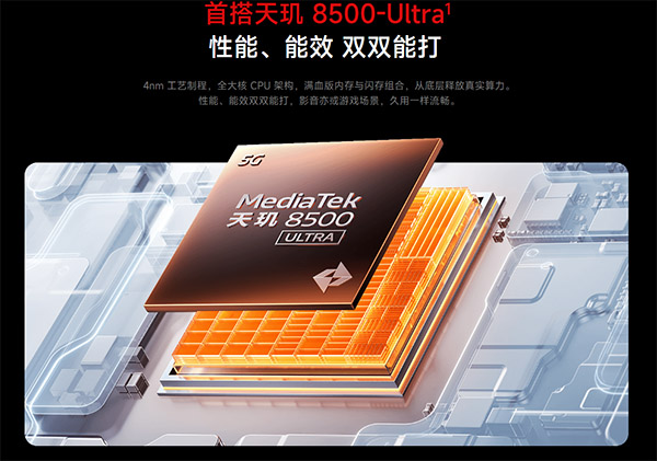 在核心的配置上,这次的红米Turbo5搭载天玑8500-Ultra处理器,还有旗舰同款的LPDDR5X Ultra内存和UFS4.1闪存,可以兼顾流畅体验和低功耗,同时结合新一代狂暴引擎调度,让性能释放与温控形成平衡闭环。