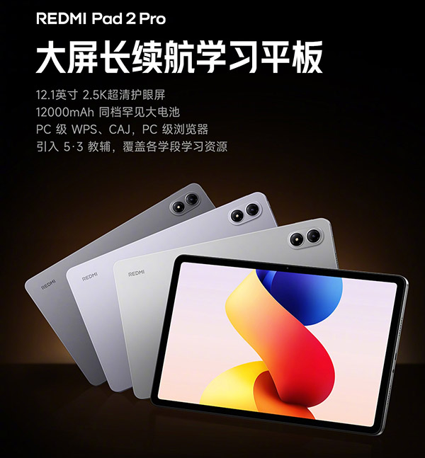 前段时间,在红米的产品发布会上,除了给大家带来了这个Turbot5系列的手机之外,还带来了这款红米Pad2 Pro平板了,这个平板发布的时候也是引来了不少的人关注了,那它的配置如何呢,下面带大家来看看相关的介绍吧。