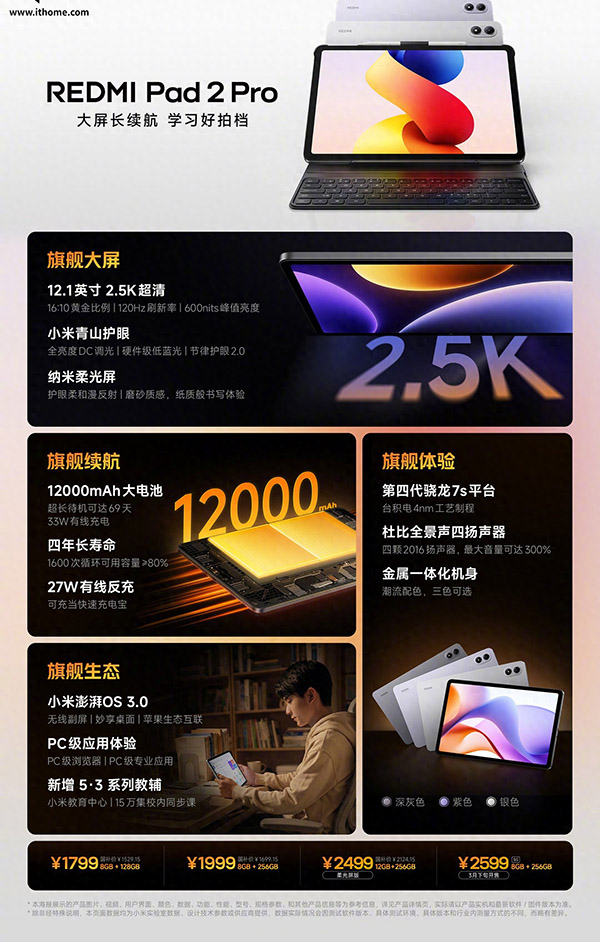 红米Pad2 Pro的参数配置详情: