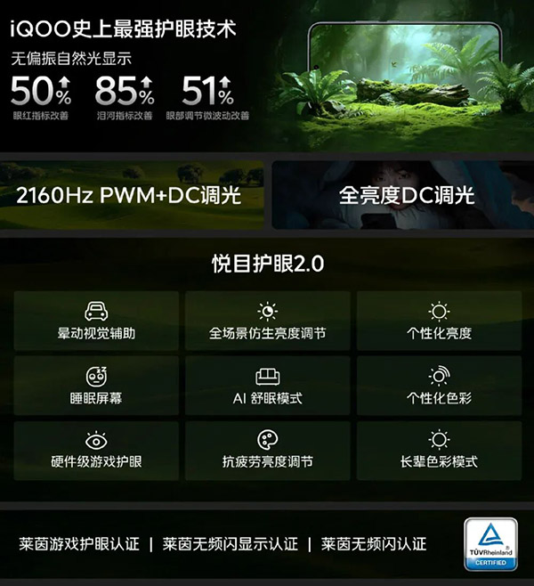 在追求极致显示的同时,iQOO 15 Ultra也把护眼做到了行业前列: