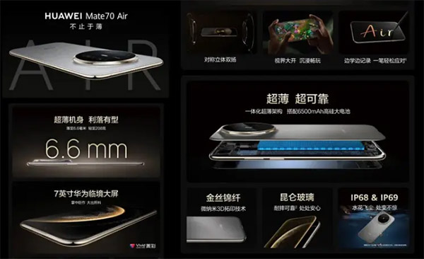 在外观上,这款华为Mate70 Air时,带给我的最大冲击不是它的7英寸大屏,而是机身的“薄”和“轻”,6.6mm的厚度、208g的重量,单看数字或许不直观,但握在手上的那种轻盈感非常明显。