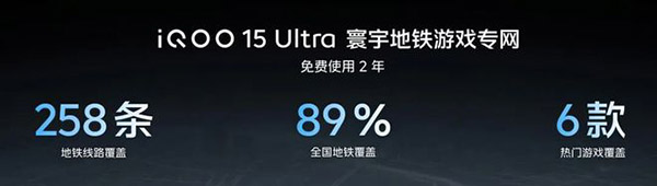 iQOO15 Ultra为让资深玩家在地铁里也能稳定地战斗,iQOO15 Ultra内置的寰宇电竞网络系统2.0,也将地铁隧道中的通信性能拉满到了极致。