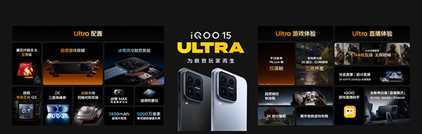 从整体的参数配置上来看,全新的iQOO15 Ultra定位“性能Ultra”,与部分Ultra机型不同,iQOO15 Ultra的主要发力方向并不在影像,而是性能,这带来了一定的差异化表现,不管是硬件上风扇的加入,还是肩键和”药丸“充电线的回归,甚至针对性开发的游戏直播生态,这一切都为广大游戏主播、电竞选手以及专业玩家在软硬件两个层面提供了独一无二的游戏体验。