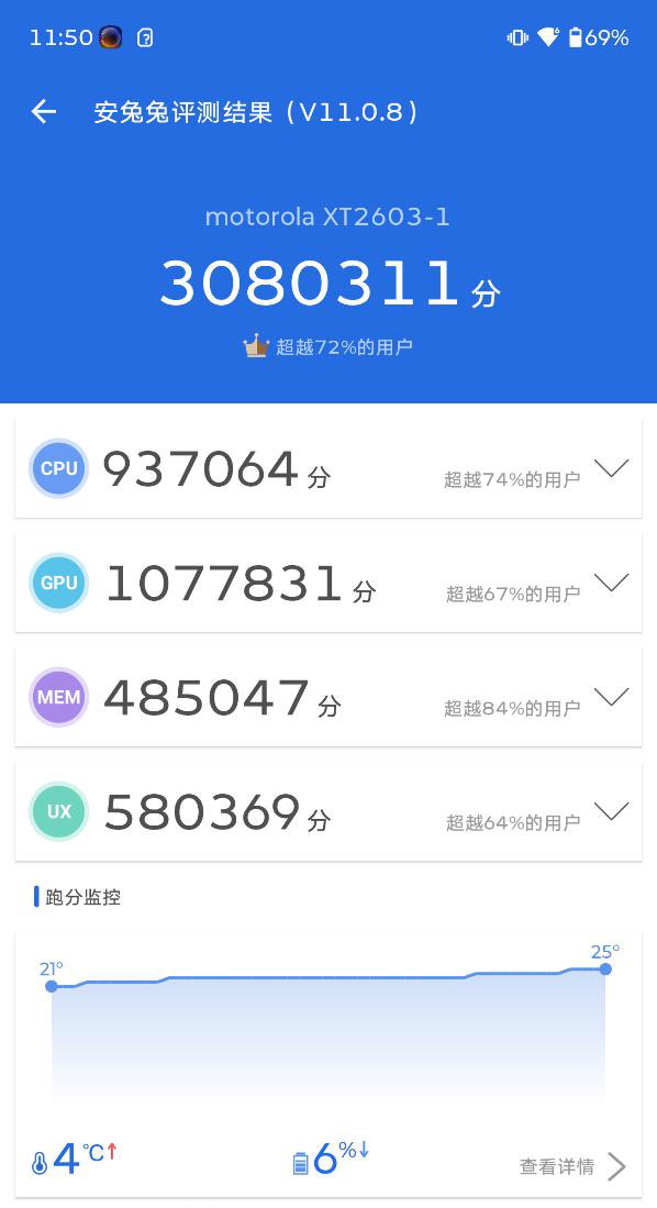 联想moto X70 Air Pro性能跑分是多少