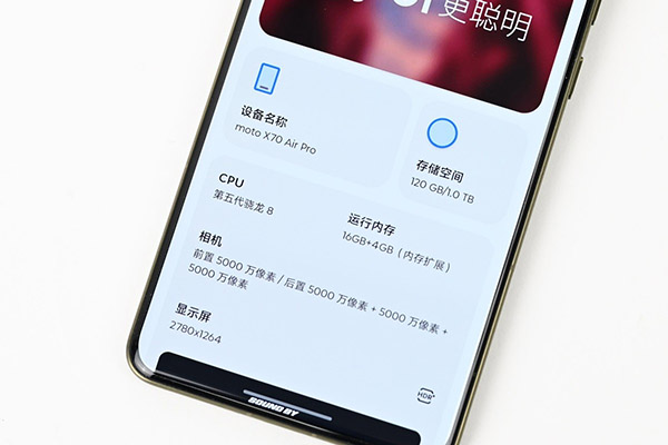 在这个硬件性能方面,联想moto X70 Air Pro的硬件性能同样非常出色,它搭载了最新的第五代高通骁龙8处理器,这是一款旗舰级处理器,采用全大核的2+6核心架构,2个超大核最高主频3.8GHz,6个性能核心最高主频3.32Ghz,拥有强大的性能和出色的能效表现。