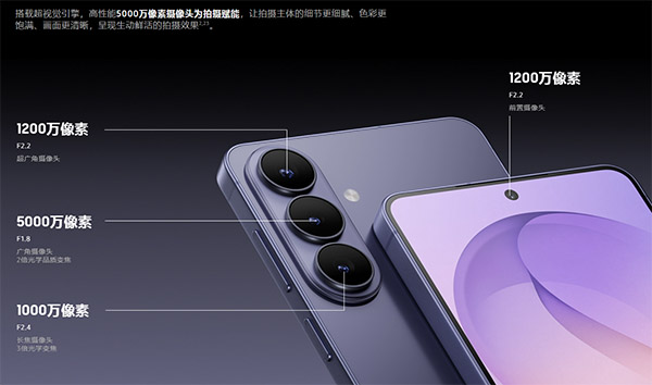 在这个影像部分,三星Galaxy S26前置1200万像素自拍镜头,后置5000万像素广角摄像头、1000万像素长焦摄像头、1200万像素超广角摄像头。