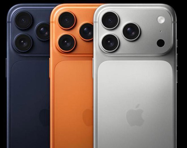 外观设计方面,苹果iPhone 17 Pro系列采用超瓷晶面板,抗刮划能力提升3倍,机身有星宇橙色、深蓝色和银色等多种配色可供选择。