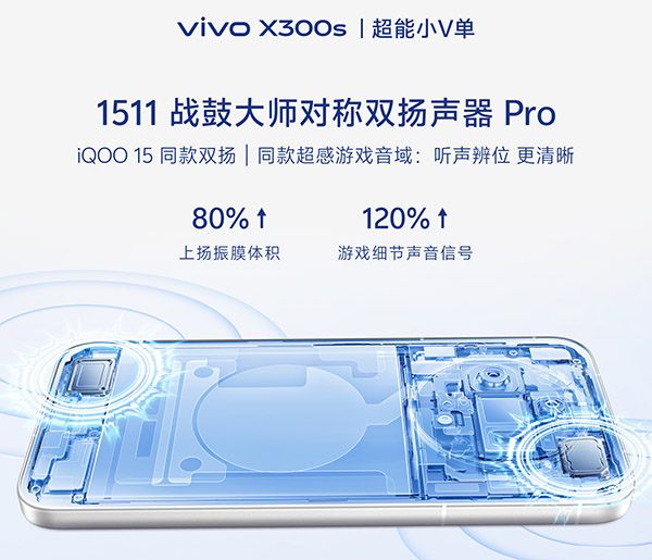 在游戏体验上,vivo X300s也下了苦功,双1511对称扬声器搭配Super-sense Gaming Audio Zone技术,能让游戏内声音细节提升120%,脚步声、枪声的层次感直接拉满。