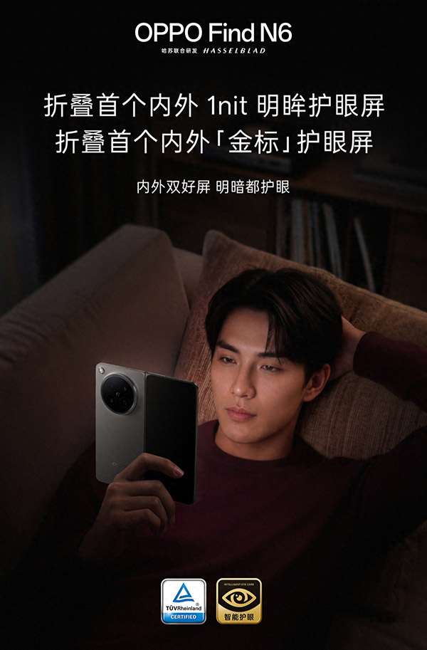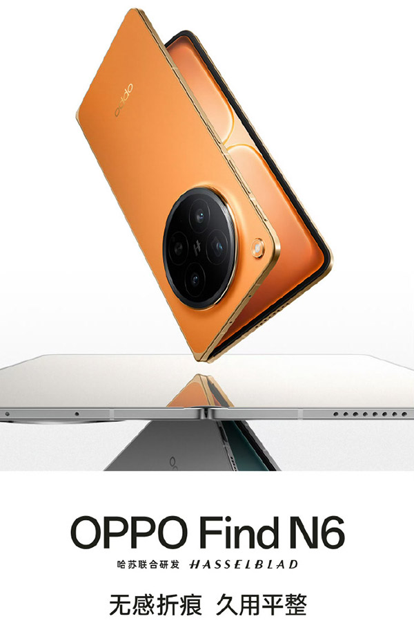 OPPO Find N6此次首发了无感折痕屏,主要归功于两大核心硬件,一是新一代钛合金天穹铰链,二是创新的天穹记忆玻璃,两者共同构筑了极其平整的显示基础。