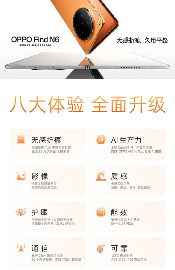而在屏幕材料上,FindN6搭载的天穹记忆玻璃表现惊人,其刚性达到传统柔性玻璃的3倍以上。即便经历数万次弯折,该材料依然具备99.9%的自修复还原度。